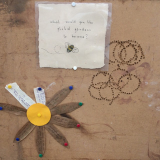 Our writer-in-resident Lucy Smith welcomed people to the site and encouraged them to add an 'idea' petal to our garden flower - inviting people to make suggestions for the garden. Poppy showed some of the visitors around and set a few up with some gardening tasks.